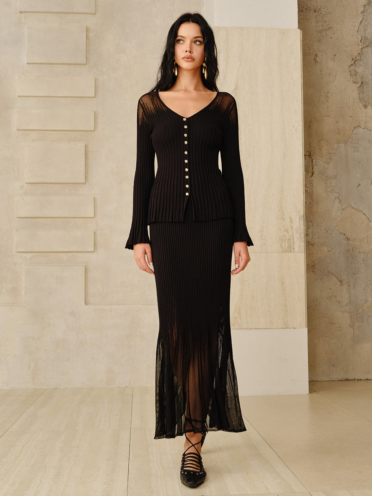 Mesh Hem Ribbed Knit Mermaid Skirt$45.00 USD -