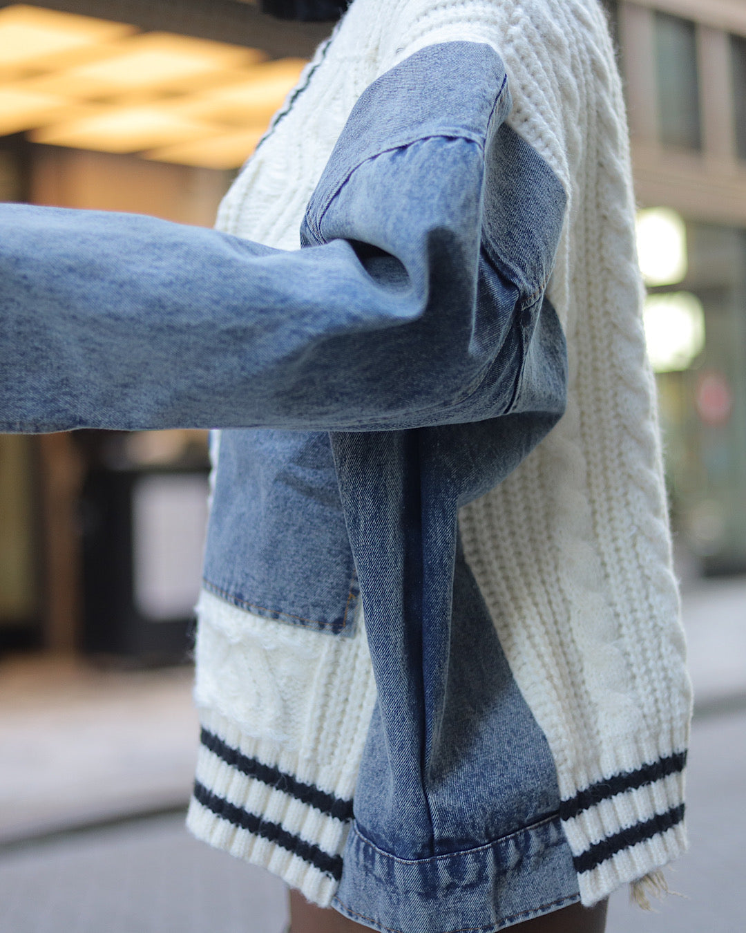 Step into cooler seasons with a statement layer that blends edge and comfort. This big-size black overcoat/cardigan features patchwork denim detailing, a flattering V-neck, and soft knit sleeves for an elevated winter–autumn look. It’s warm, stylish, and easy to throw over any outfit—perfect for adding texture and attitude to your everyday wardrobe.