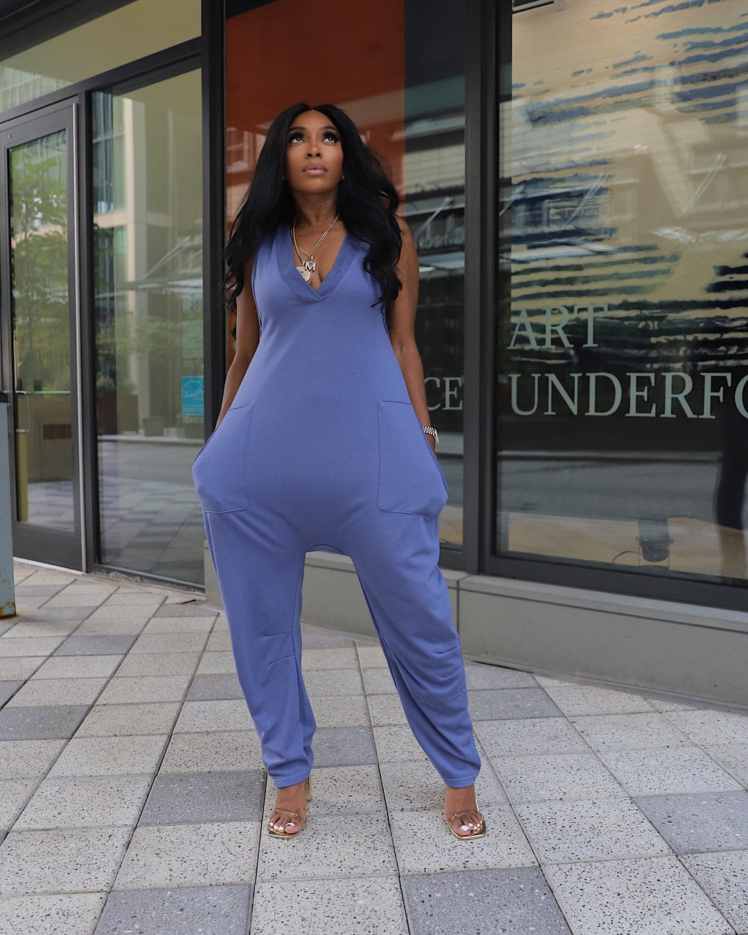 Comfy and Chic jumpsuit perfect for everyday wear. This casual chic look can be worn dress up with heels or with sneakers. True to size. Model wearing a Small