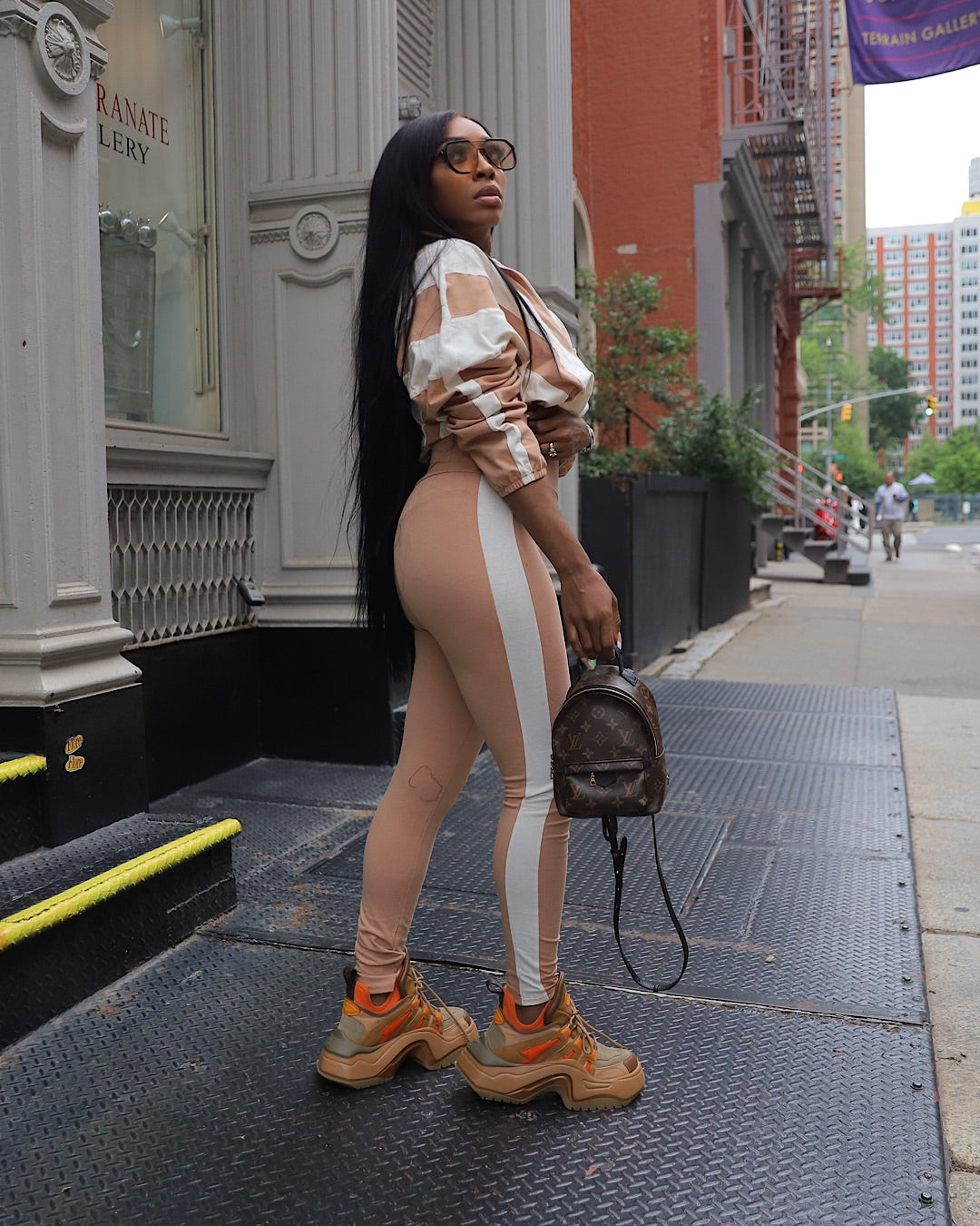 This sporty-chic sweatsuit set blends streetwear vibes with a polished edge. The zip-up cropped jacket features bold color blocking, while the high-waisted leggings hug just right with contrast side stripes for a sleek silhouette. Whether you pair it with heels for a night out or sneakers for a casual flex, this set brings the perfect mix of comfort and cool.